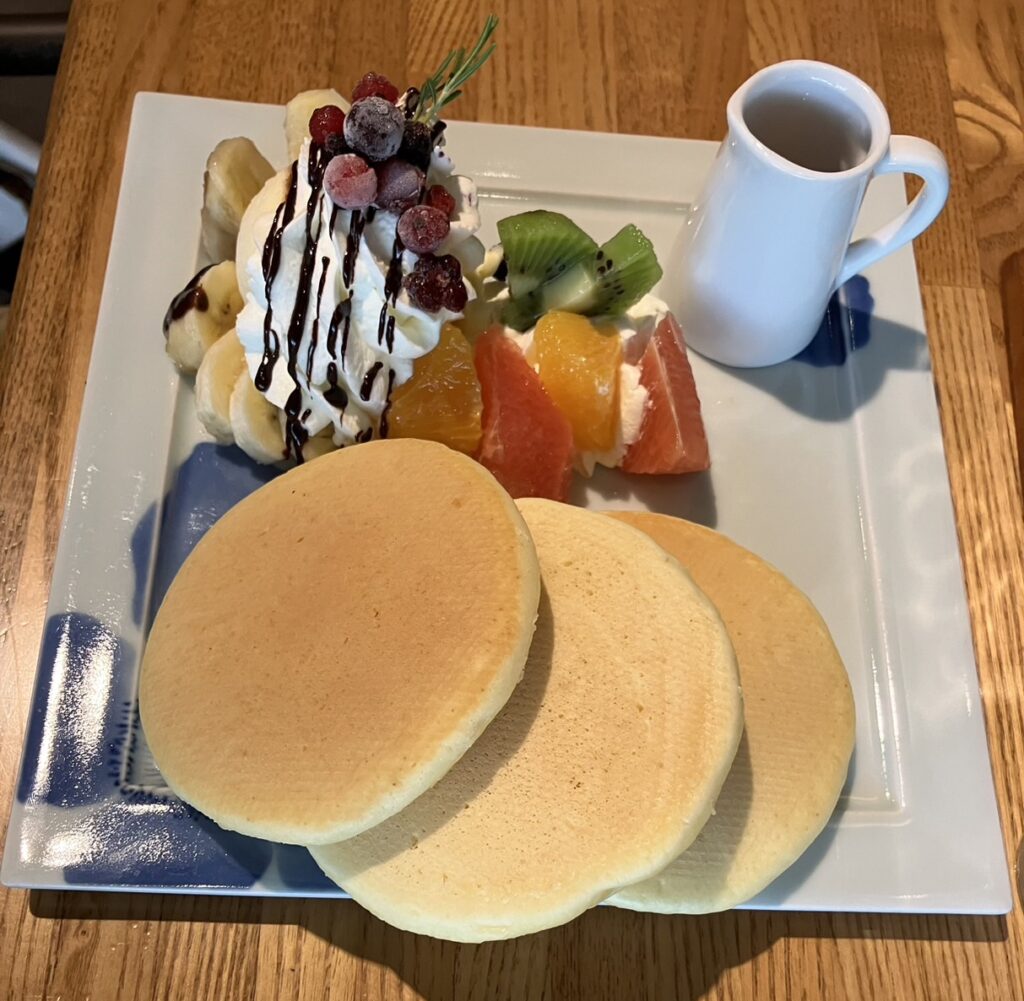 サザパフェとパンケーキもアイスや生クリーム、果物がたっぷりで甘くて美味しいです。コーヒーにとても合いそうですね!
