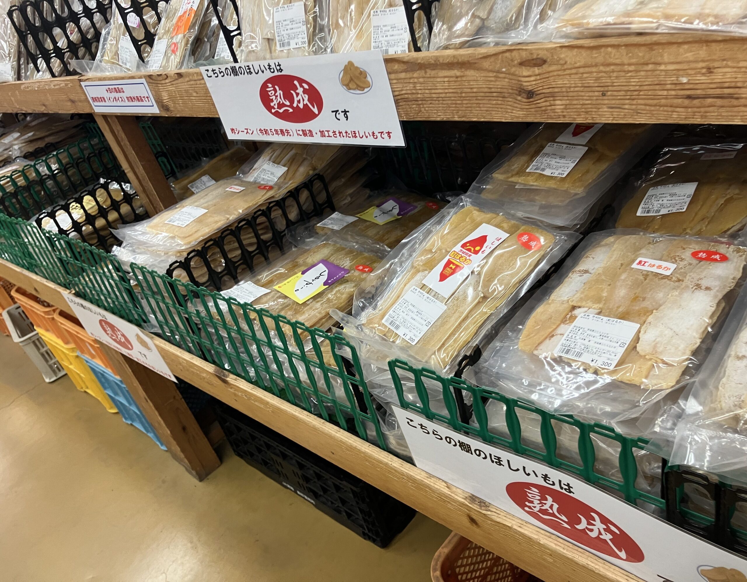 特にほしいも売り場の賑わいがすごく、商品の量には目を見張るものがありました。