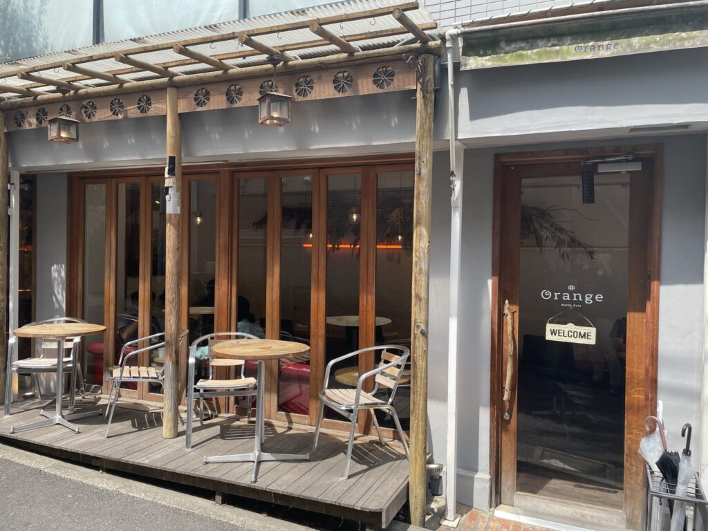 Waffle cafe Orangeさんは、まず、下北沢駅の東口を出て左に曲がり、⑫自転車置き場前を過ぎて右に曲がって少し進んだところにあります。より詳しい位置関係が知りたい方はこちらからどうぞ。