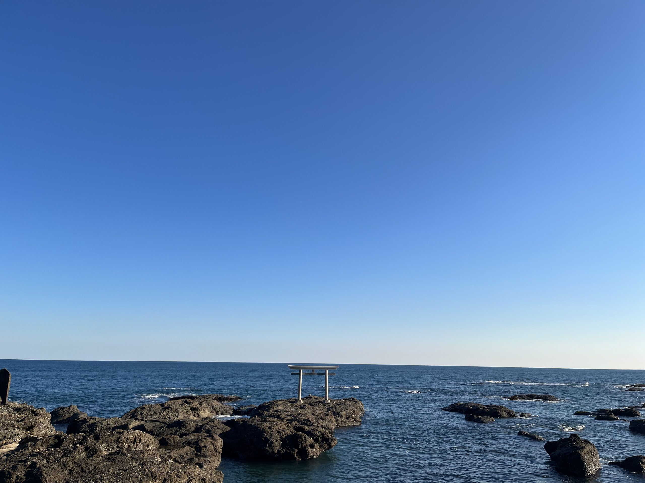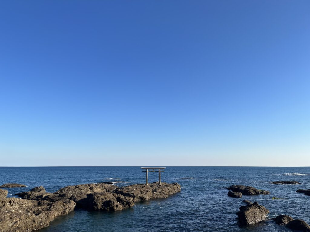 神が降り立った地とされるところに立つ「神磯の鳥居」