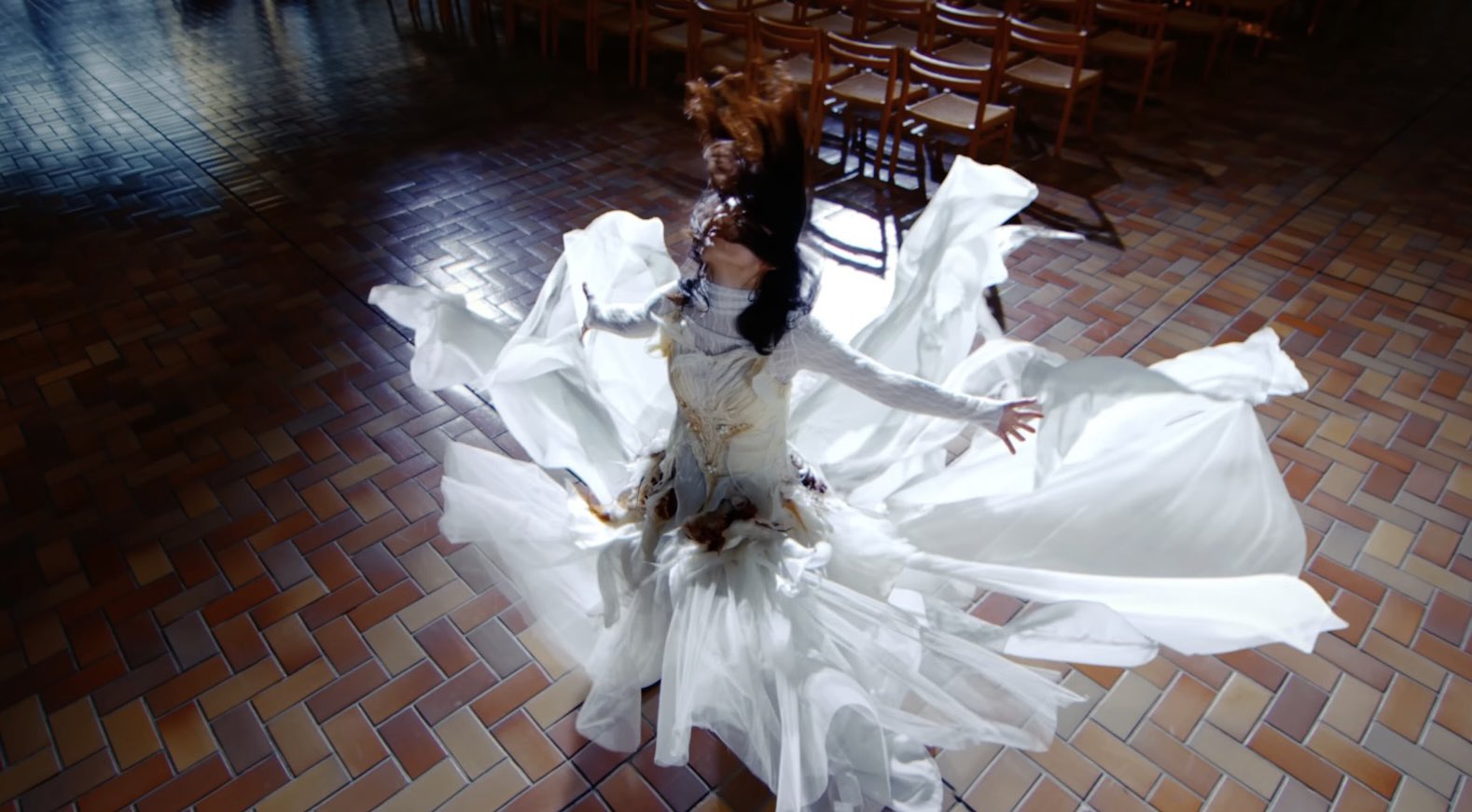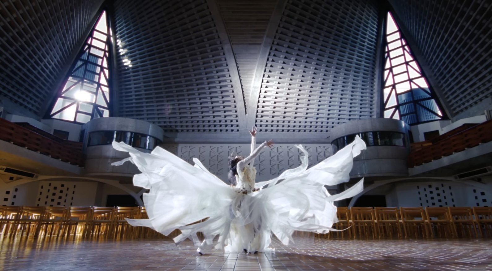 スカート部分は、形や長さの異なるパーツが何層にも重なったデザインとなっているため、スカート部分が広がりやすく、パフォーマンスしやすいような衣装になっています。例えば、この楽曲は細かなステップなどのリズムに合わせた複雑な動きが特徴的であることから、このようなダンスパフォーマンスに適しています。また、上半身の衣装部分は体にフィットした、タイトなデザインとなっており、広がりやすいデザインである下半身のスカート部分とは対照的であるため、ターン時によりスカートの広がりが際立って見えるのもポイントです。詳しくはユーチューブの1分50秒~サビ終わりまでをご覧ください!