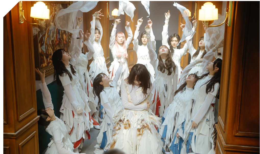 今回紹介する衣装は、櫻坂46の「承認欲求」です。この衣装は、クールな系統の衣装であり、「承認欲求」のセンターを務める森田ひかるがMVで着用しています。この衣装のスカート部には動きのあるシルクシフォンのパーツをメインに大量にレイヤードしてあります。どの角度から見てもきれいな広がり方であることが特徴的です。