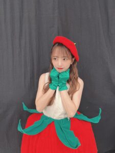 この衣装の推しポイントは、帽子などの装飾品では、野菜の茎や葉っぱなどの部分が細かくデザインされており、全体のコーディネートが引き立つところです。衣装だけでなく装飾品にもこだわっており、リアルに野菜を表現しています。また、一人ひとりが異なる衣装で役割が与えられているため、全員が映える楽曲です。