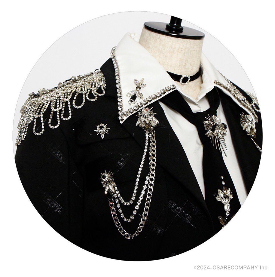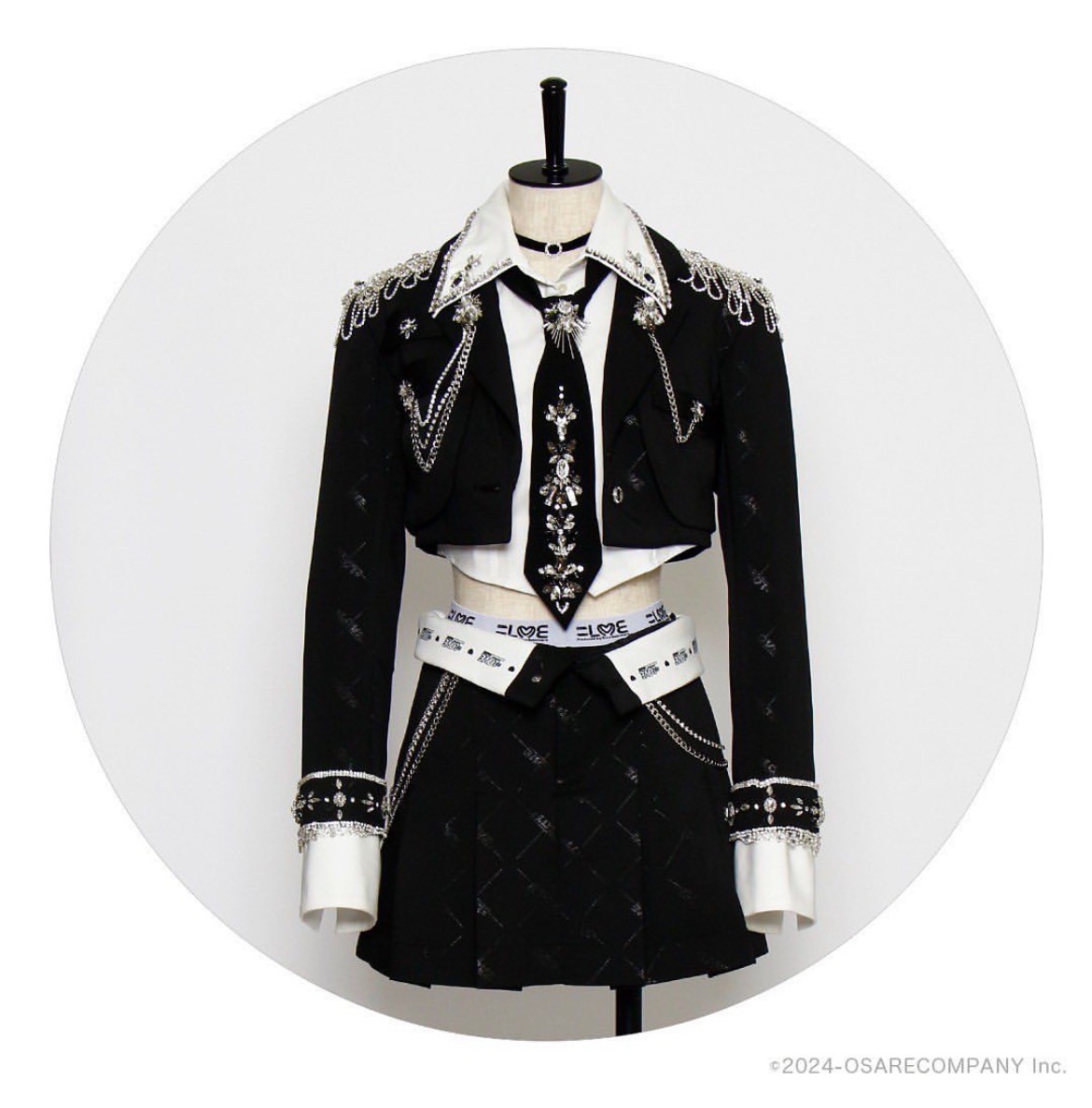 そんなクールな楽曲に合わせたこの衣装は、ネクタイやチョーカーによってスタイリッシュさを出しつつ、全体に散りばめられたシルバーの装飾がきらびやかさを演出し、ステージ上での存在感を引き立てています。
