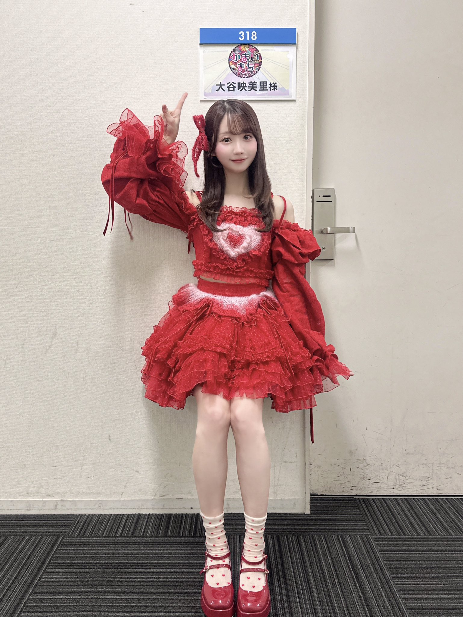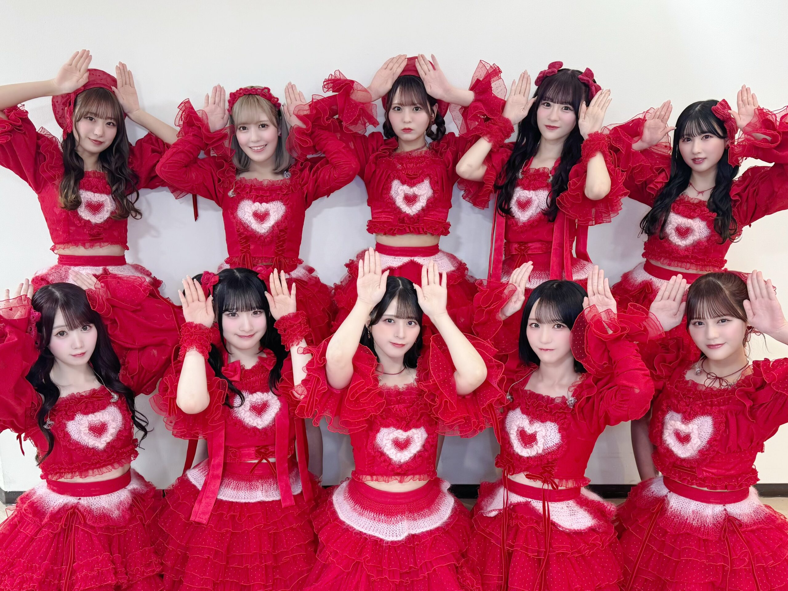 今回紹介する衣装は、=LOVEの「とくべチュ、して」のMVで着用されている衣装です!この衣装は、全体を鮮やかな赤で統一したドレスが印象的で、ステージ上でもひときわ目を引くデザインです。胸元には大きなハートのモチーフが施されていて、可愛らしさとインパクトを兼ね備えています。情熱的なカラーと大胆な装飾が、パフォーマンスの華やかさを一層引き立てています^^