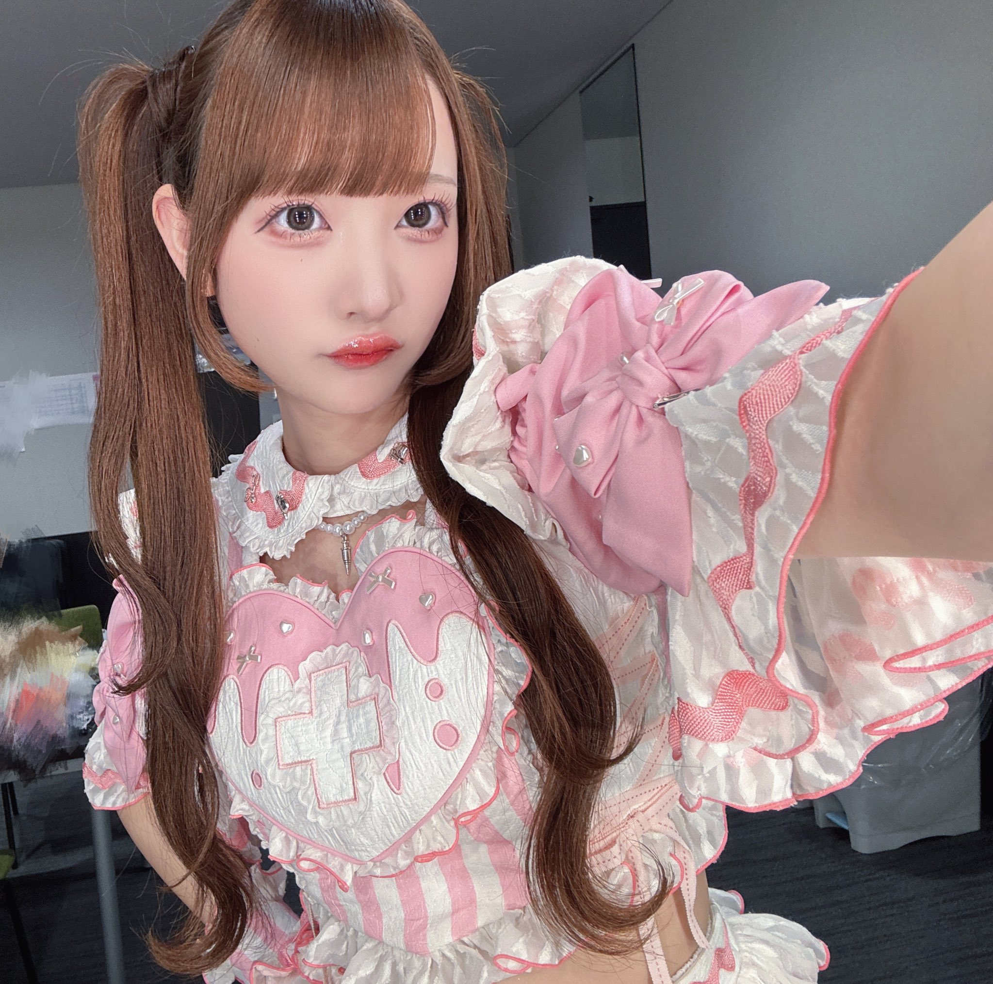 あのシンプルなイメージのナース服でも、アイドル衣装になるとこんなにもかわいらしい服になってしまうんです。フリルやリボン満載で、頭からつま先までかわいいが詰まった衣装になっていますね。